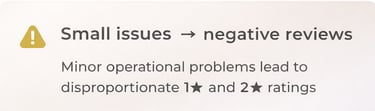 We identify the exact operational patterns generating negative feedback, friction, and rating stagnation. See what keeps repeating inside your reviews..